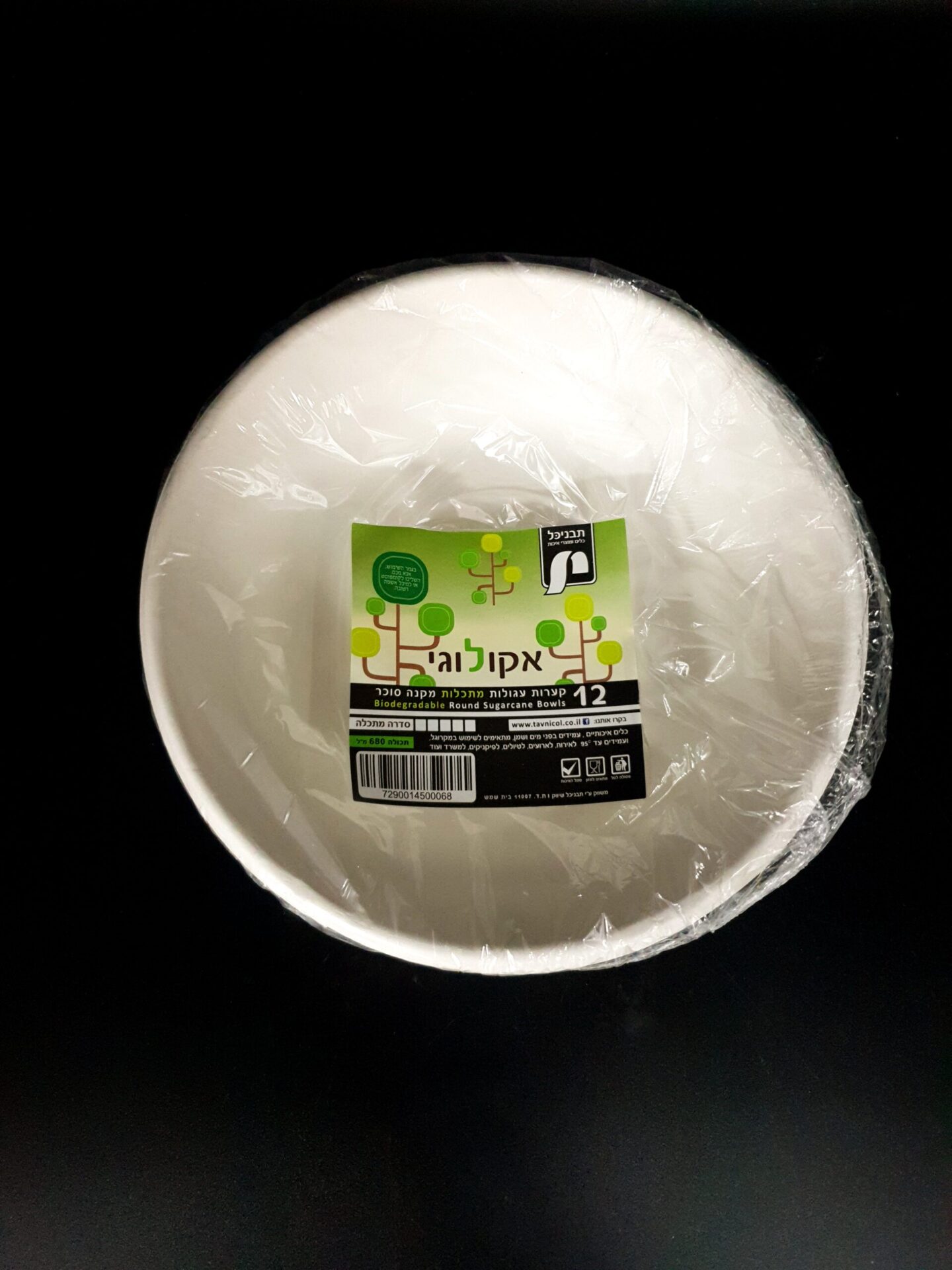 קערה עגולה מתכלה 680 קנה סוכר ארוז 12 יח
