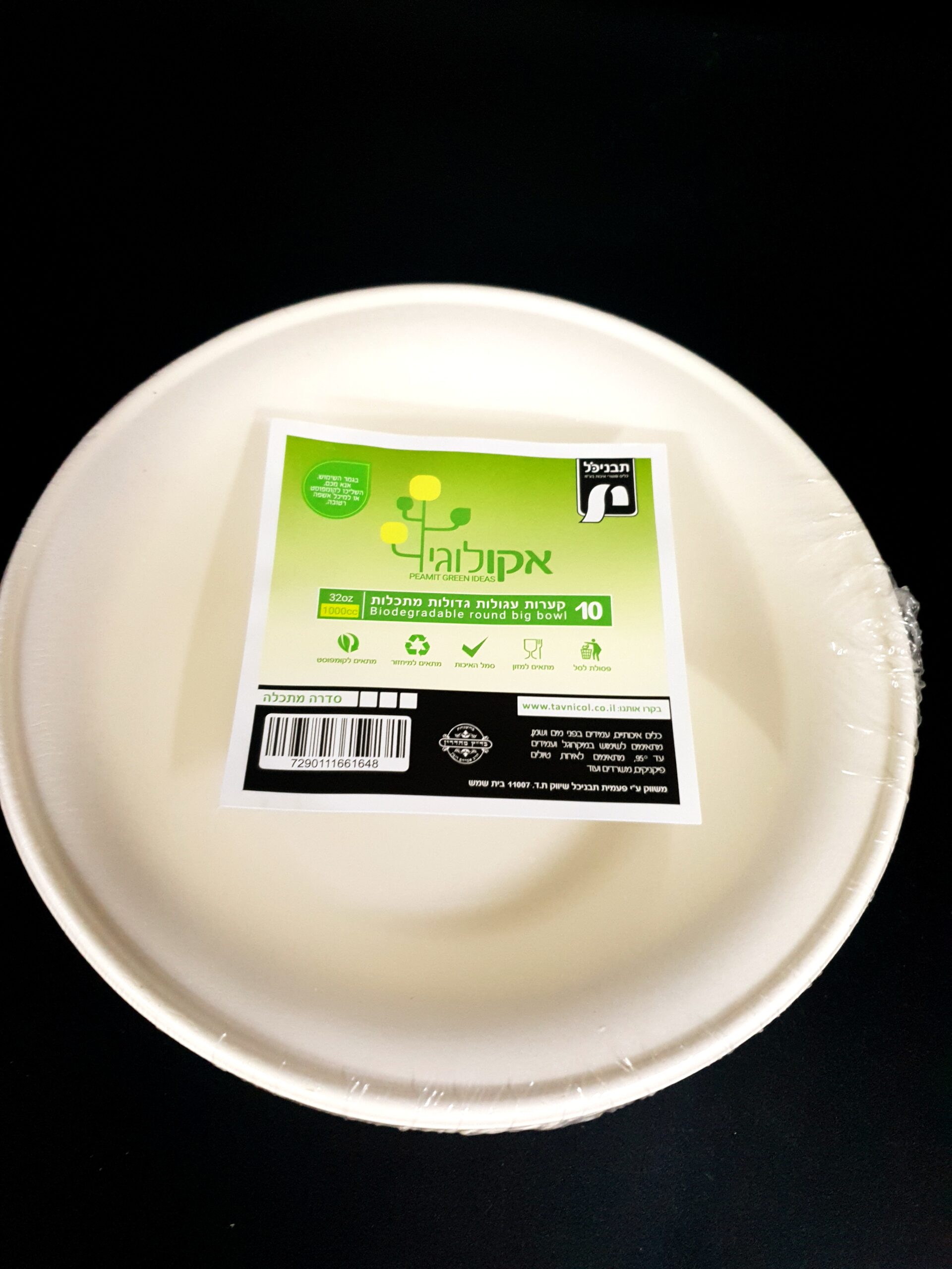קערות עגולות גדולות מתכלה קנה סוכר ארוז 10 יח